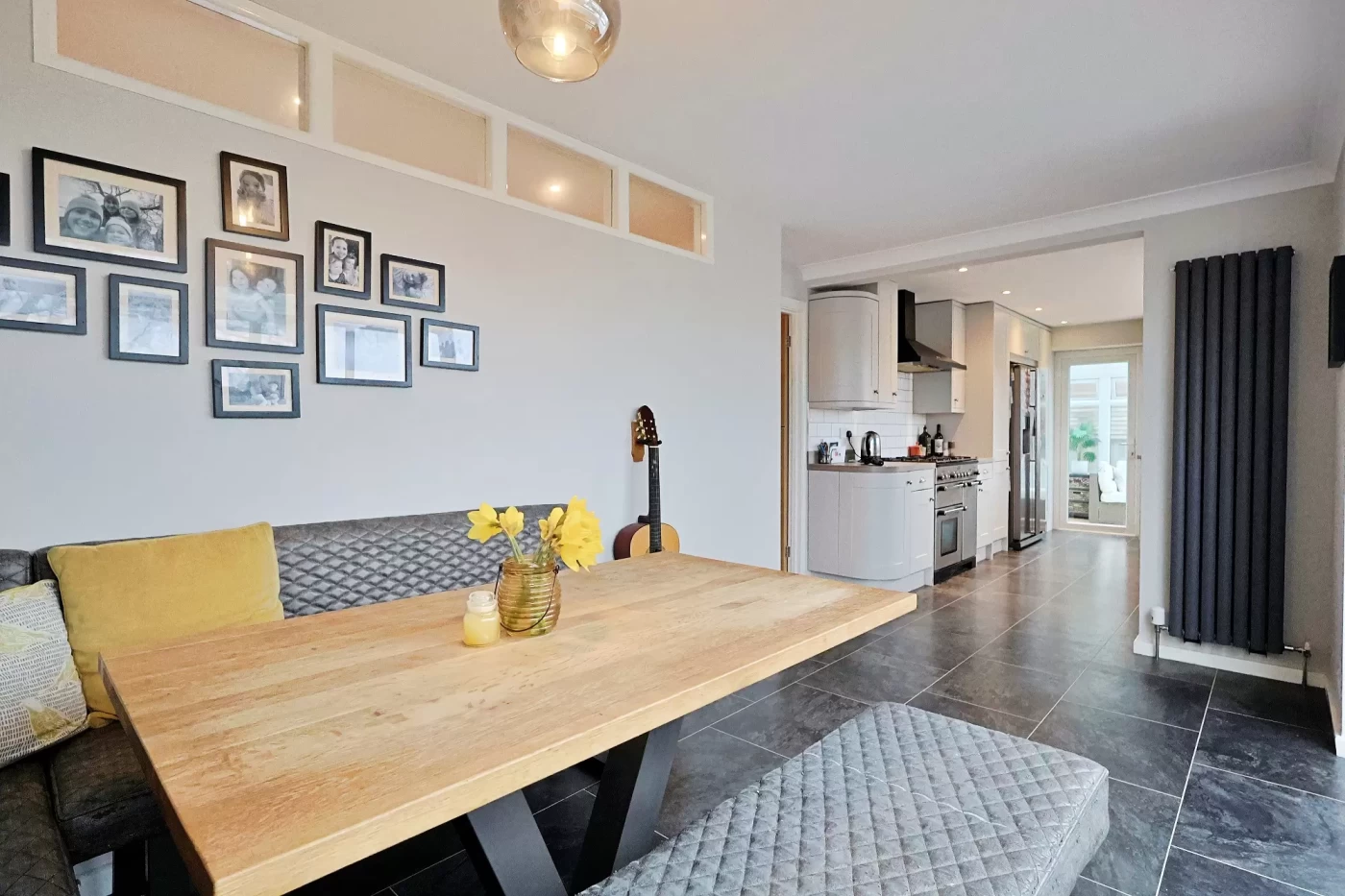 The property has been thoughtfully extended by the current owners, creating an impressive split-level living space that forms the heart of the home.