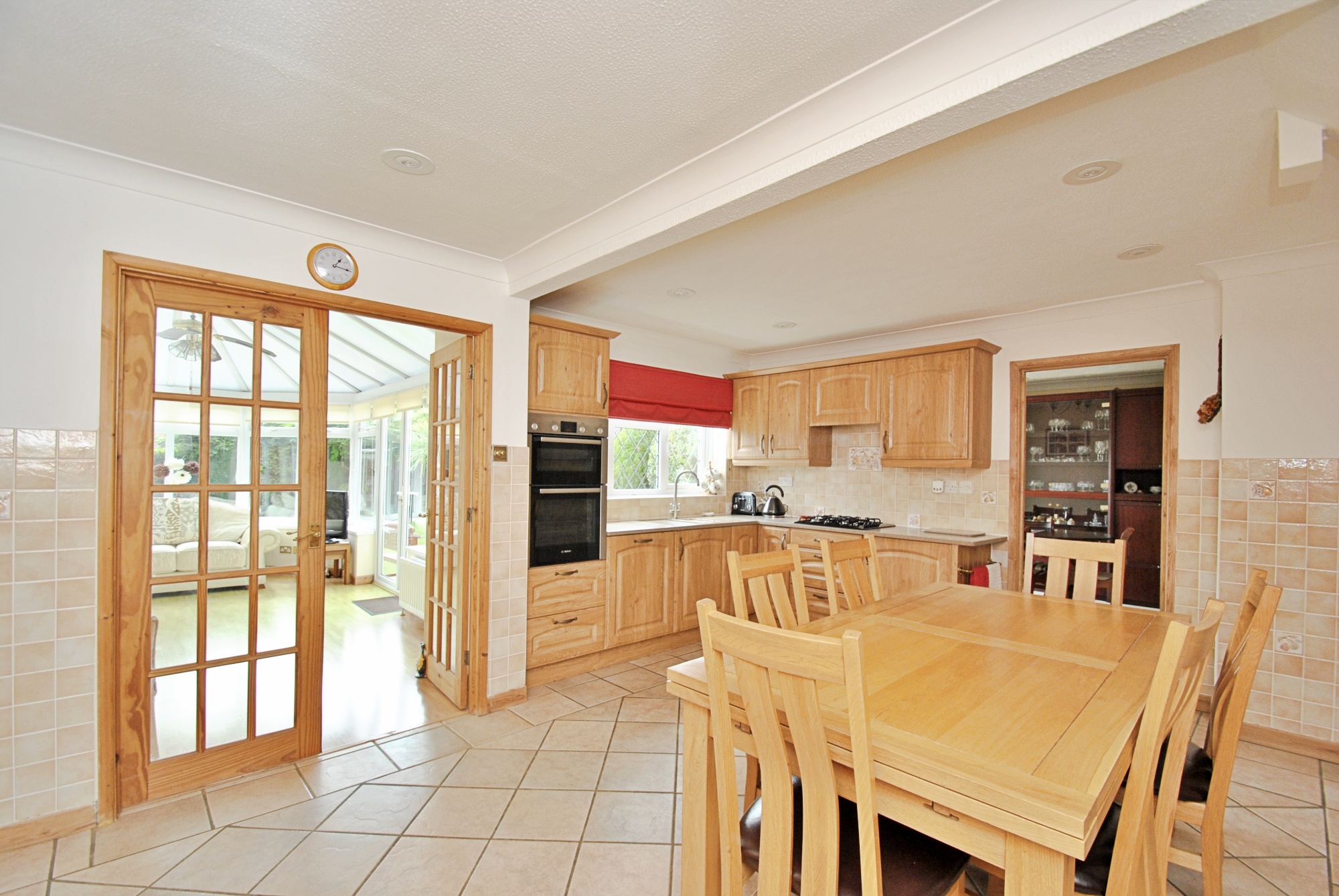 On the ground floor, the property features a welcoming reception hall where stairs rise to the first floor. The sitting room has a feature gas fire and surround. Double doors lead to a separate dining room with doors out to the rear garden. In addition, there is a generously sized conservatory that overlooks the rear garden.