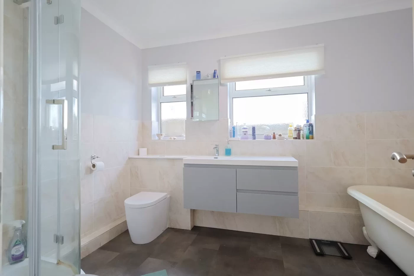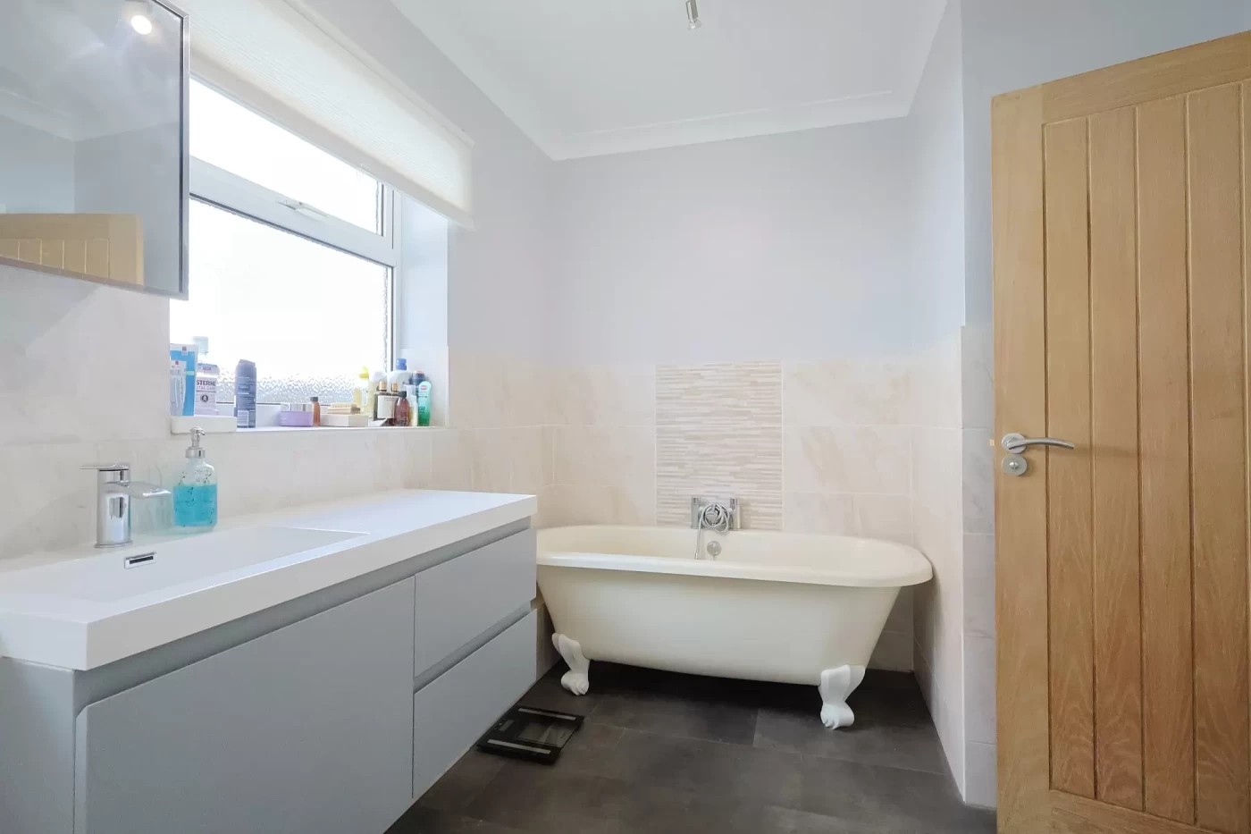 On the ground floor there are two well-proportioned double bedrooms, served by a stylish family bathroom comprising a four-piece suite, including a separate shower and a classic roll-top bath (the bath might be replaced with similar).