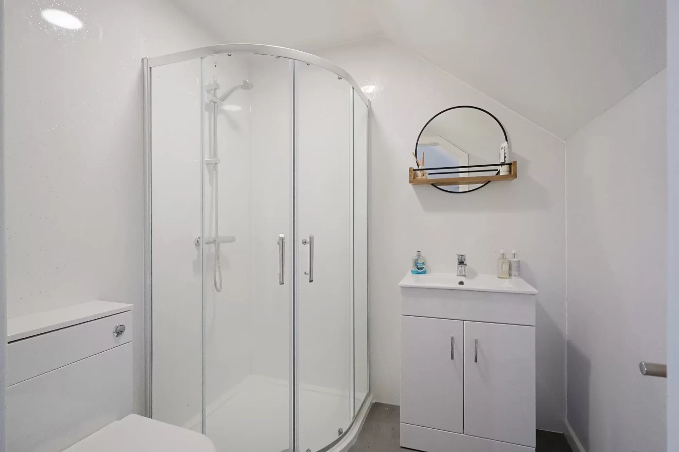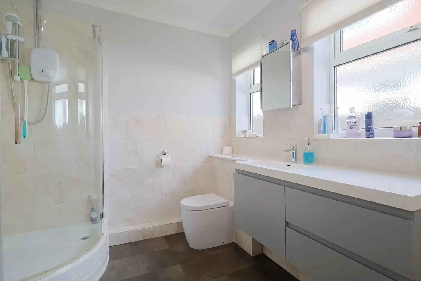 The first floor provides two further bedrooms, both benefiting from fitted storage. The main bedroom featuring a modern en-suite shower room.