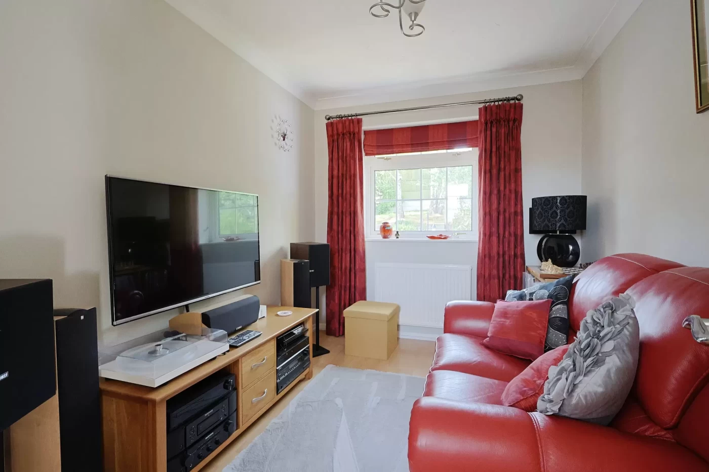 The principal sitting room is positioned to the front of the property and features a bay window fitted with shutters, allowing for excellent natural light. A feature fireplace with gas fire creates an attractive focal point, making this a comfortable and inviting living space.