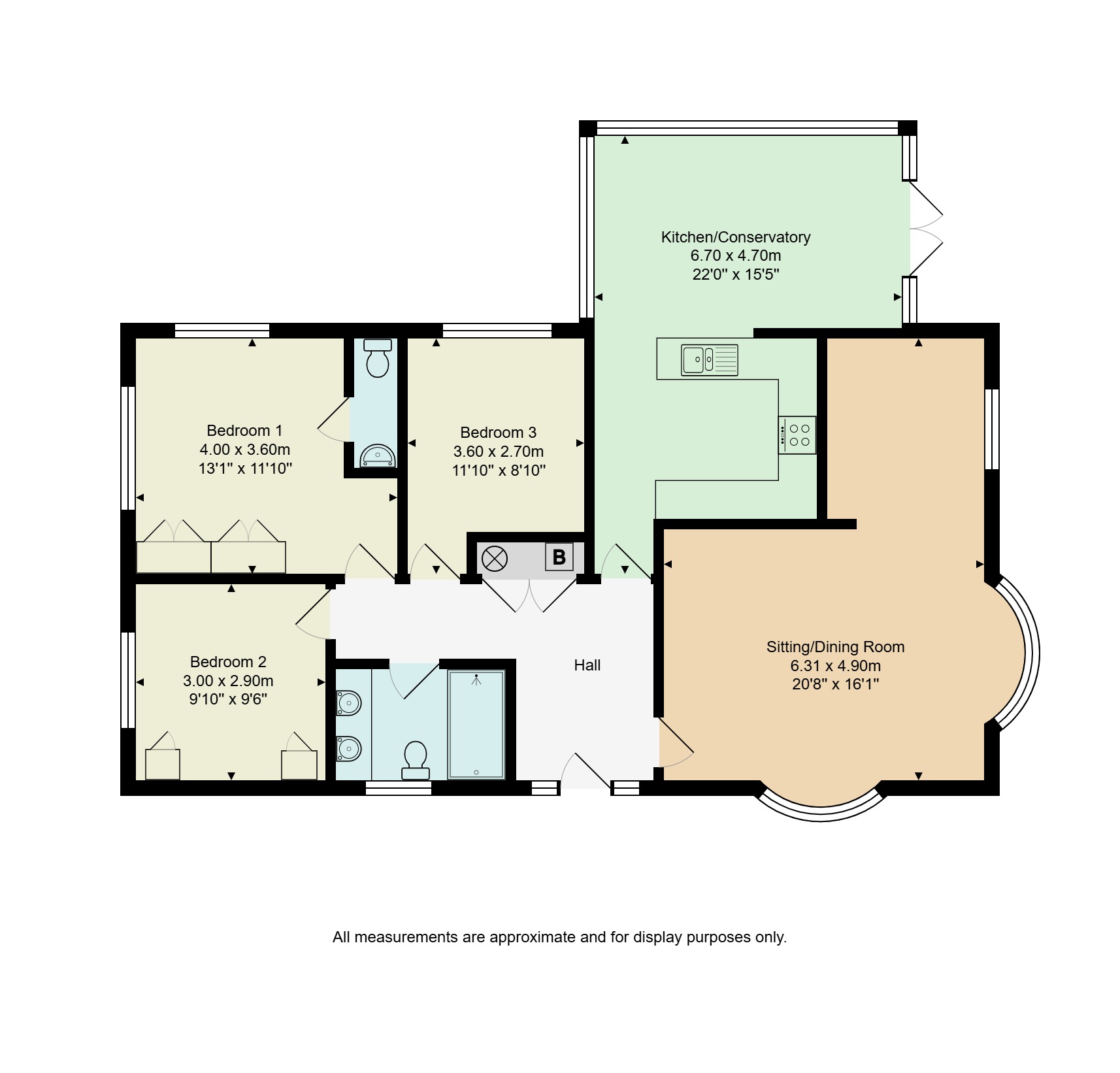 There are 3 double bedrooms, bedroom 1 includes an en suite cloakroom with a WC and wash basin. The shower room is fully tiled, there is a built-in vanity unit with twin wash hand basins, WC and a large walk in shower.