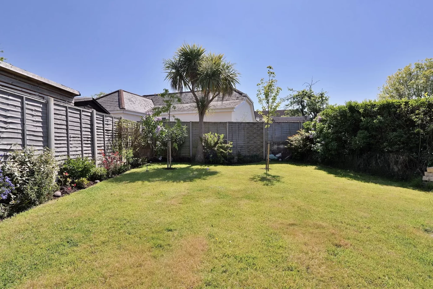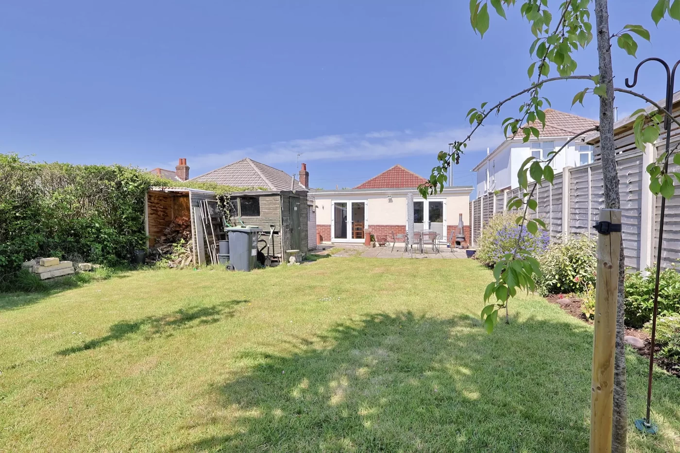 The rear garden is a particular feature of the property, enjoying a high degree of privacy and seclusion. A patio area adjoins the rear of the bungalow, ideal for outdoor dining, while the remainder is predominantly laid to lawn. The garden is enclosed by timber panel fencing with planted borders, creating an attractive and secure environment.
