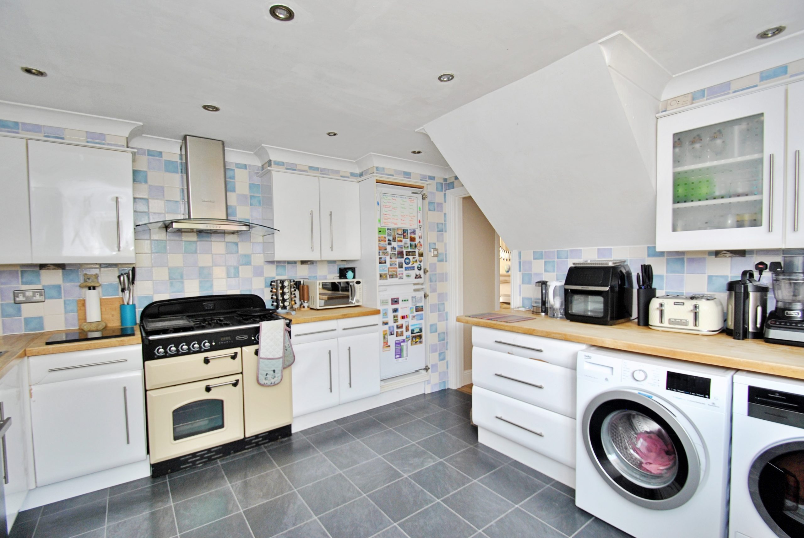 The accommodation includes a generous sitting/dining room, ideal for both relaxing and entertaining, which flows into a large conservatory that enjoys views over the garden. The extended kitchen offers ample workspace and storage. There is also a ground floor cloakroom with wc and wash basin.