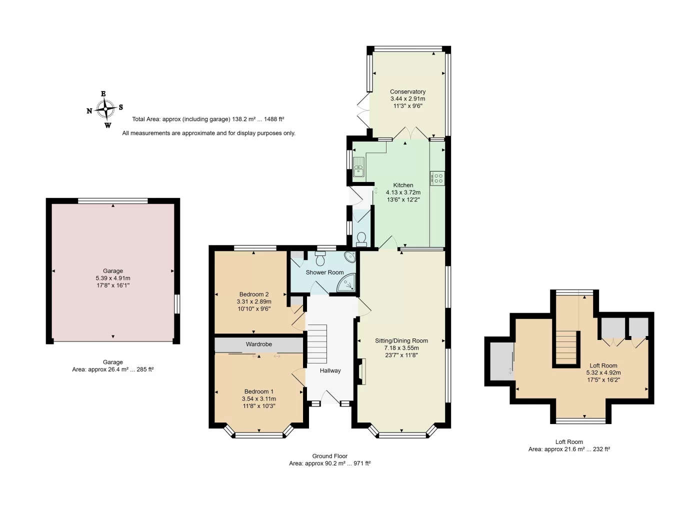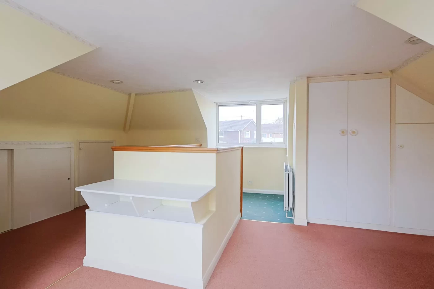 From the hallway, steps lead to a loft room, providing a versatile space with dual-aspect windows to the front and rear elevations, along with built-in storage and access to the eaves.