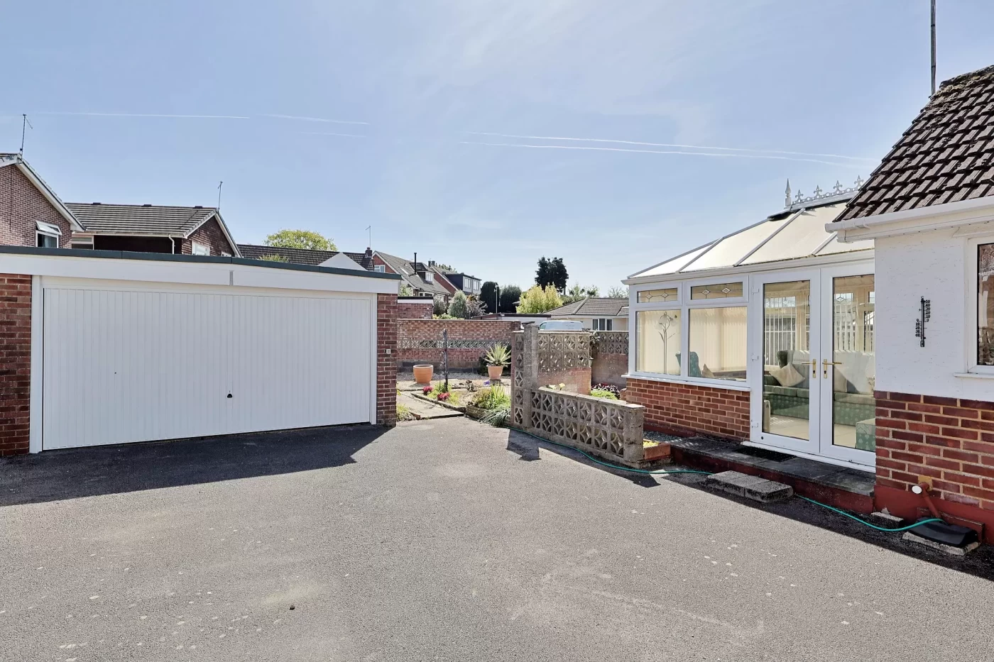 Externally, the property sits on a generous plot. A driveway runs along the side of the bungalow, extending to the rear where there is ample parking for numerous vehicles and access to the detached double garage, which is equipped with an electric up-and-over door.