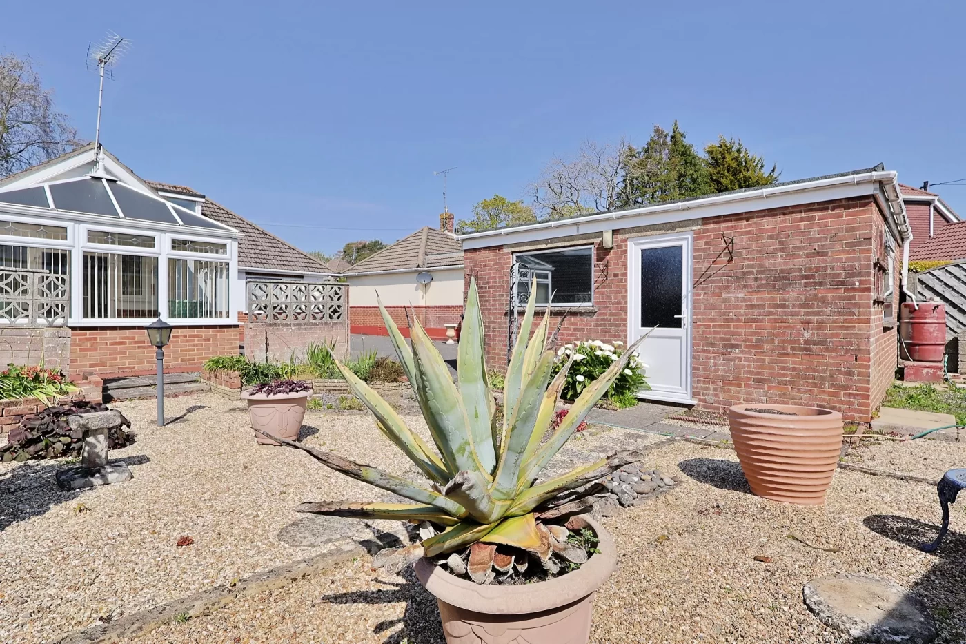 The front and rear gardens have been designed with ease of maintenance in mind, predominantly laid to shingle with well-stocked planted borders, while an additional area behind the garage provides an ideal space for a vegetable garden.